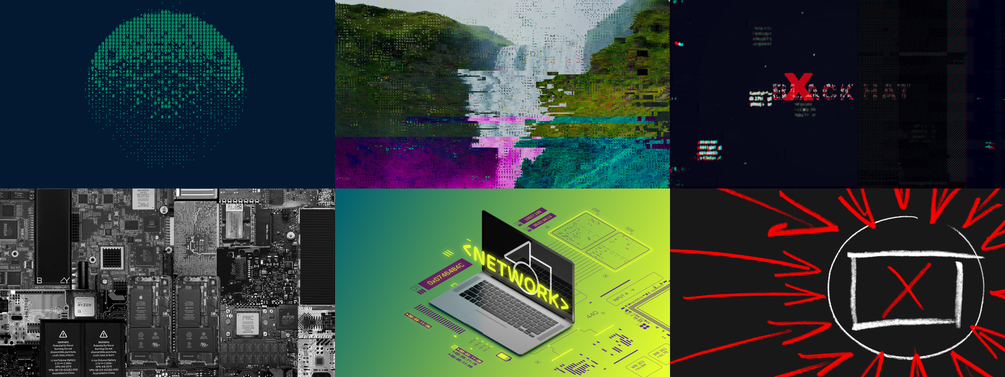 - Wireframe Title: A techy, wireframe title with faked 3D wireframe text, devices, and other tech elements (first image)